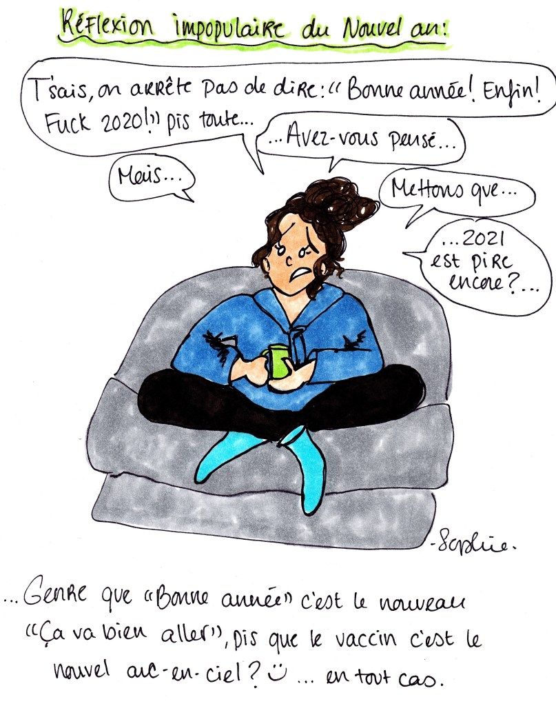 2021 Date : 2 janvier 2021Auteur : Sophie LD Catégorie : Autres/Divers Navigation des articles ← Bilan 2020 Trois p’tites vieilles → Partager sur X(ouvre dans une nouvelle fenêtre) X Cliquez pour partager sur Facebook(ouvre dans une nouvelle fenêtre) Facebook Envoyer un lien par e-mail à un ami(ouvre dans une nouvelle fenêtre) Courriel J'aime chargement…